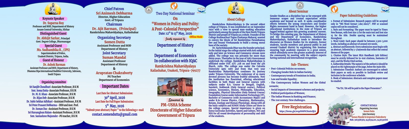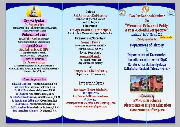On behalf of this institution, I welcome you to the new official website of Ramkrishna Mahavidyalaya (RKM), Established in 1950. This website is an initiative to provide a platform for the students, teachers and parents to find necessary information and at the same time establish a direct link with the college authorities. The College is situated at Kailashahar.....